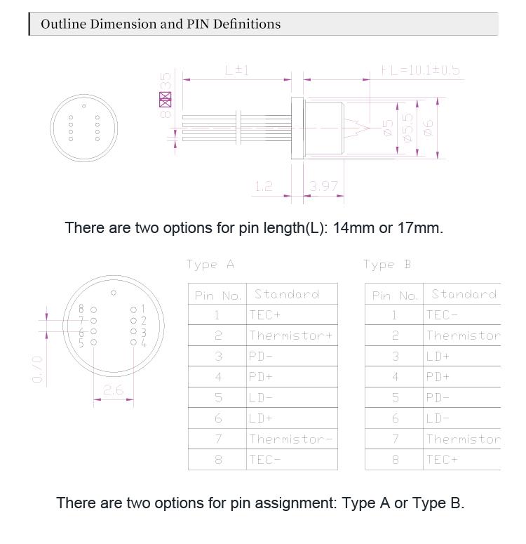 ● Ultra small form-factor 8-pin TO package with aspherical lens